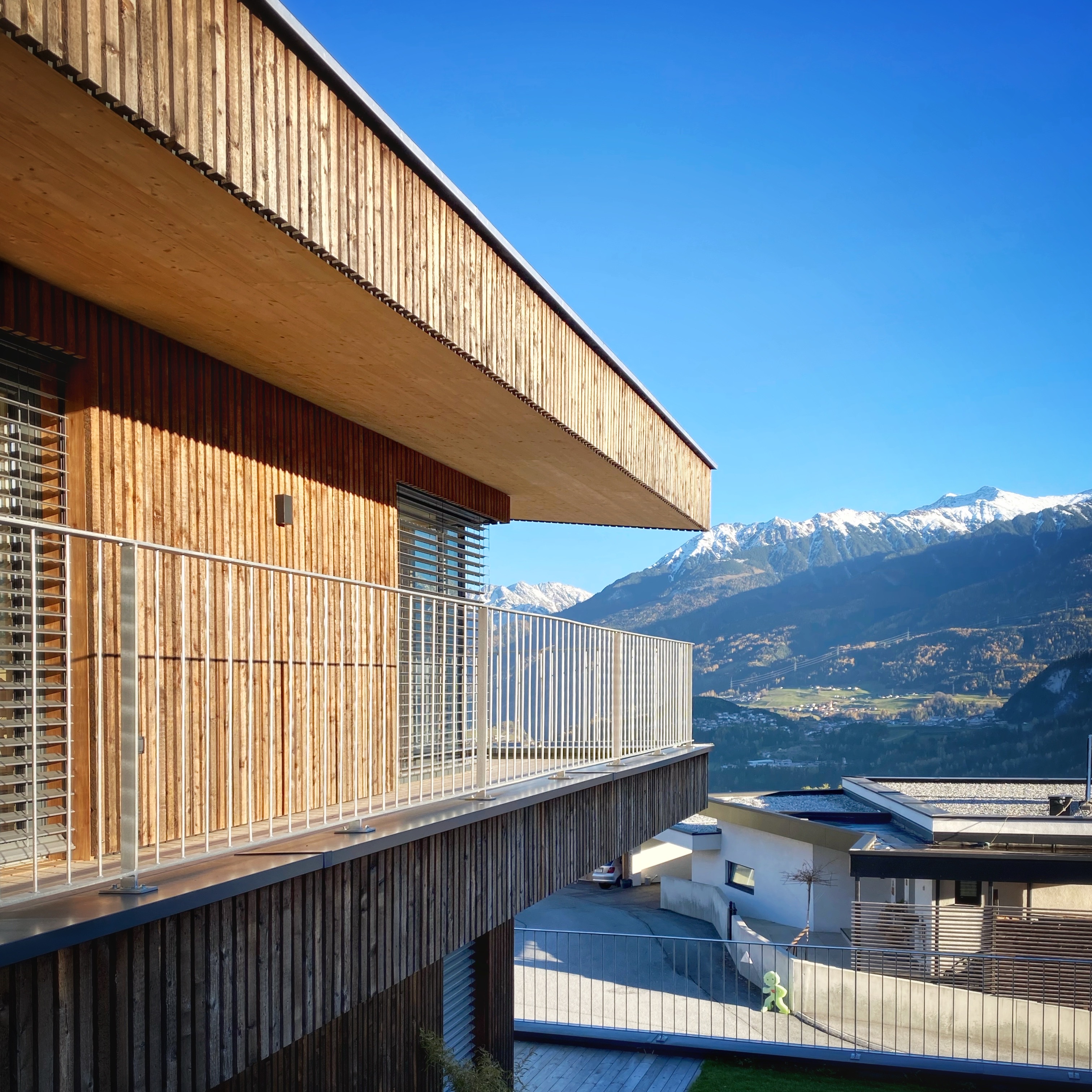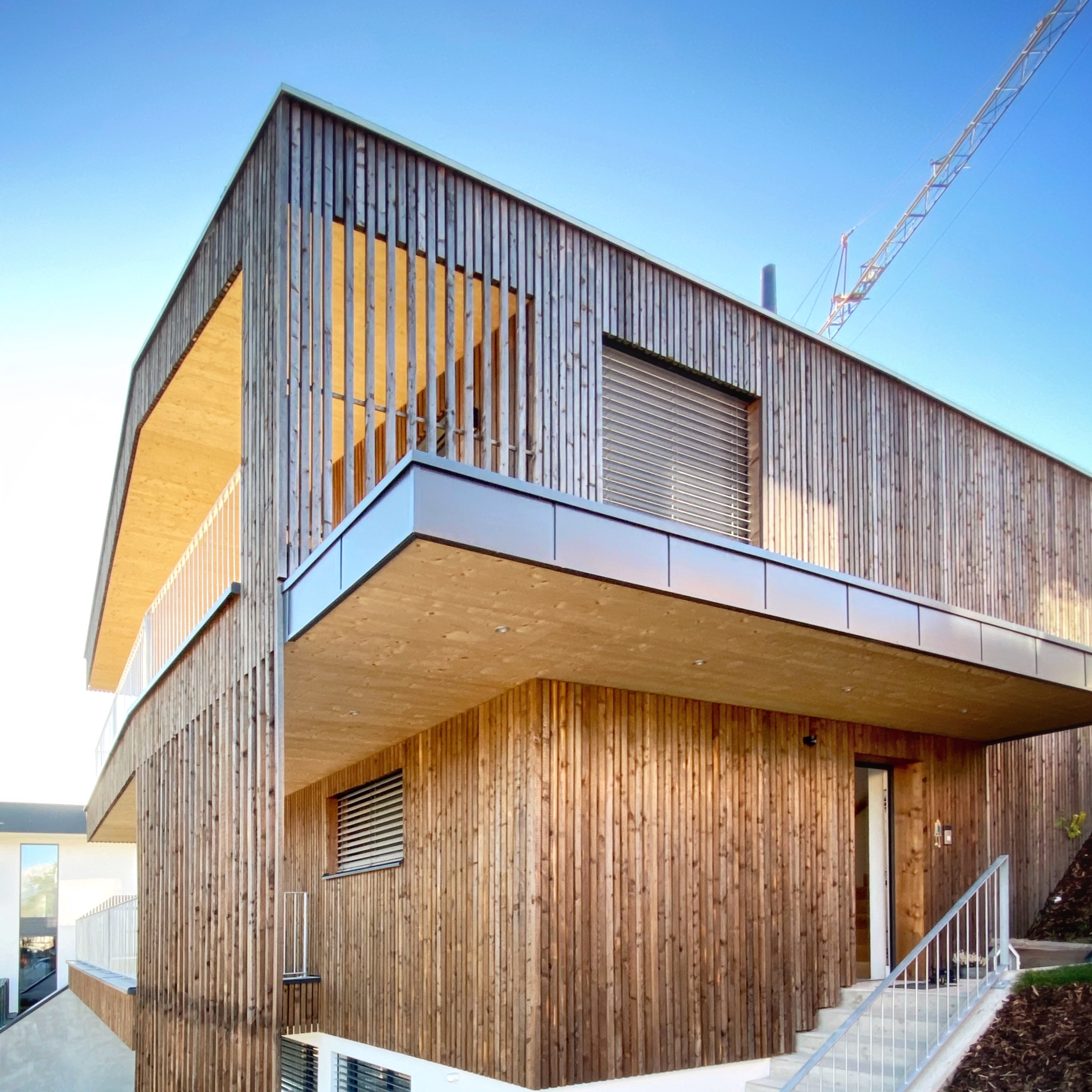 Ein Hanggrundstück am Waldrand mit fantastischer Aussicht, Platz für eine vierköpfige Familie und eine Werkstatt waren die Vorgaben für den Entwurf. Das Konzept wurde so aufgeteilt, dass im Erdgeschoß die Werkstatt Platz findet um Kunden zu empfangen. Damit die Vorteile des Grundstücks bestmöglich ausgenutzt werden können, wird der Wohnbereich nach oben gesetzt und öffnet sich zur Aussicht weit über das Tal. Der private Bereich mit den Schlafzimmern ist von der Haupterschließung des Hauses abgetrennt und verfügt über einen abgeschossenen Gartenbereich...